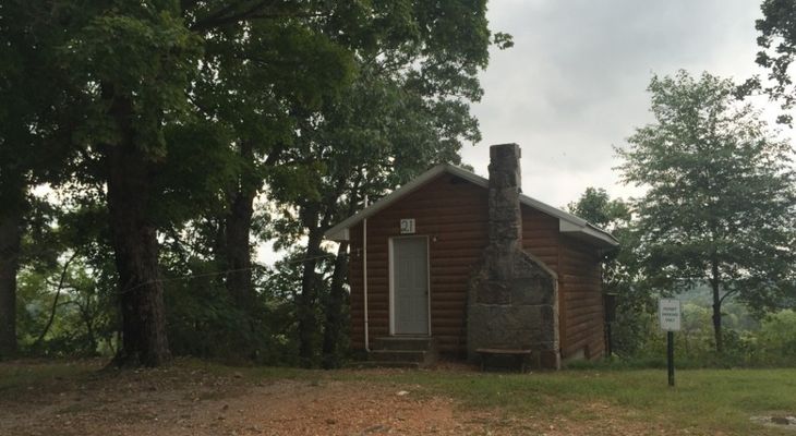 Teeter's Cabin is a one room cabin with a restroom. The back deck overlooks the bluff and the valley below. It is furnished with three twin beds.